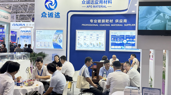 现场不少观展者驻足展台前,近距离观察靶材的微观结构,认真聆听技术人员对各类靶材产品性能及应用的详细讲解,更有企业代表现场咨询合作细节,展位内交流氛围十分热烈,充分展现出众诚达新材料的吸引力。